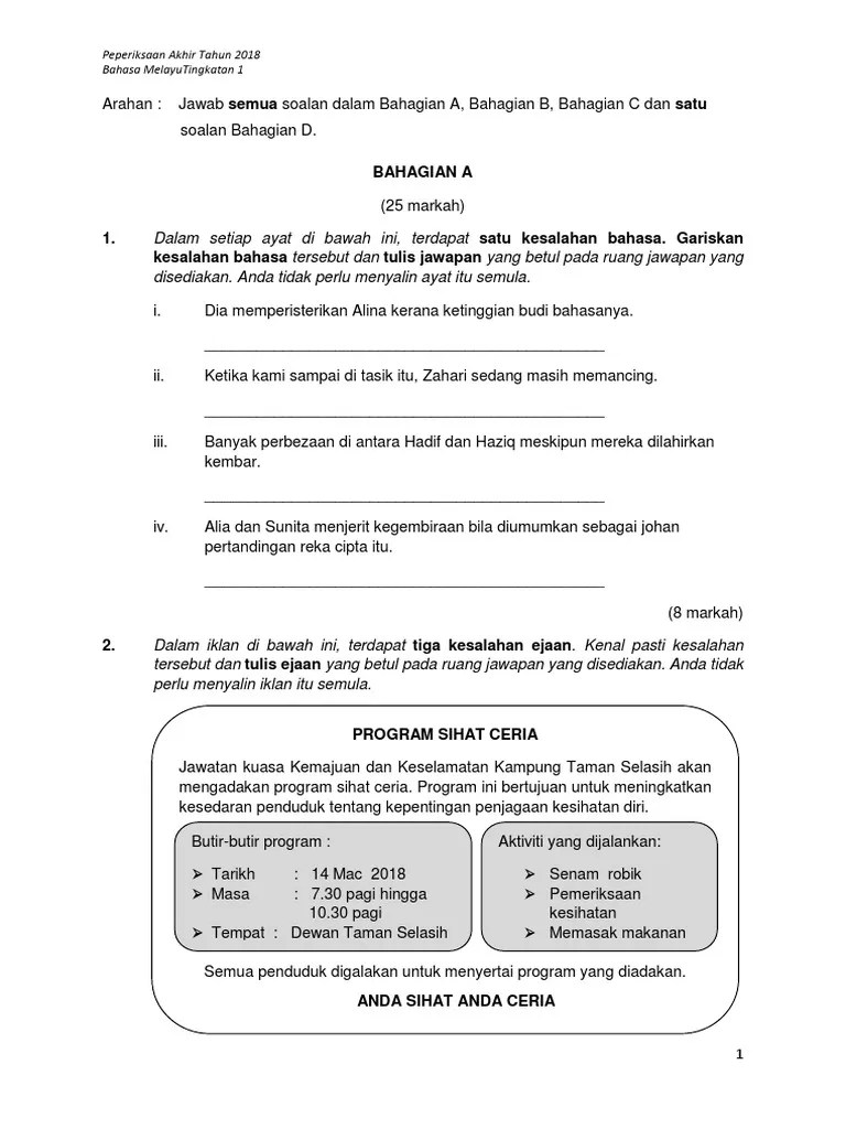 Soalan peperiksaan pertengahan tahun bahasa inggeris tingkatan 1 bernilai contoh soalan peperiksaan akhir tahun bahasa melayu tingkatan 1 kssm contoh resume .
